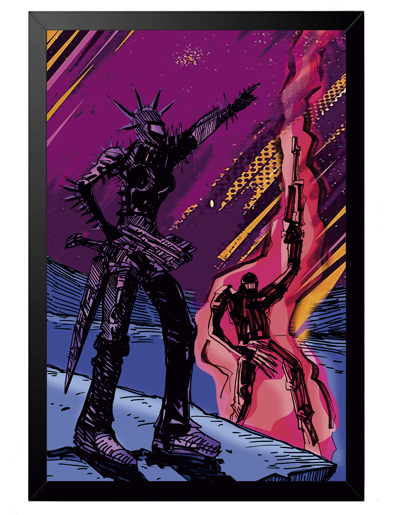 Arte Original da Série EM CORES, c/ moldura. Temática Sci-Fi, Cyberpunk, Goth. Art By Law Tissot. (on ig @lawtissot)