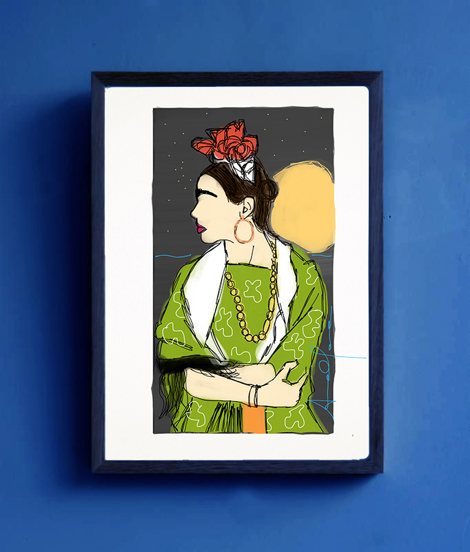 Quadro já emoldurado da coleção HashTag Frida da artista Ana Clara Tissot. Tamanhos disponíveis: A5; A4; A3. Já em moldura.