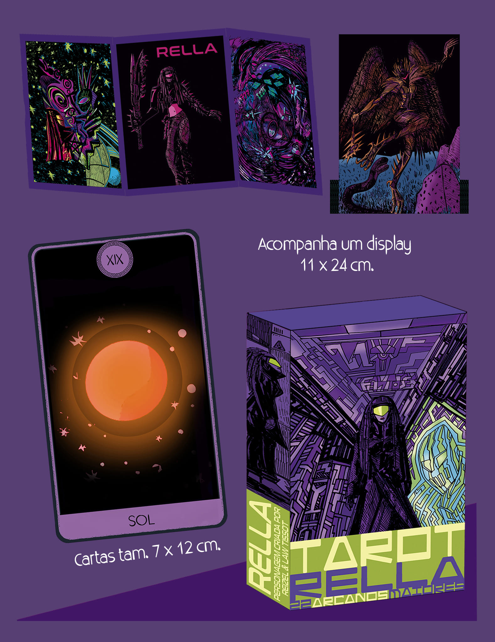 DECK DE TAROT RELLA - 22 ARCANOS MAIORES Características do produto: Deck: 1,5x1,5x15 cm Contém: 22 cartas de Tarot (7 x12 cm); ACOMPANHA DE BRINDE: Display 11x 24 cm.