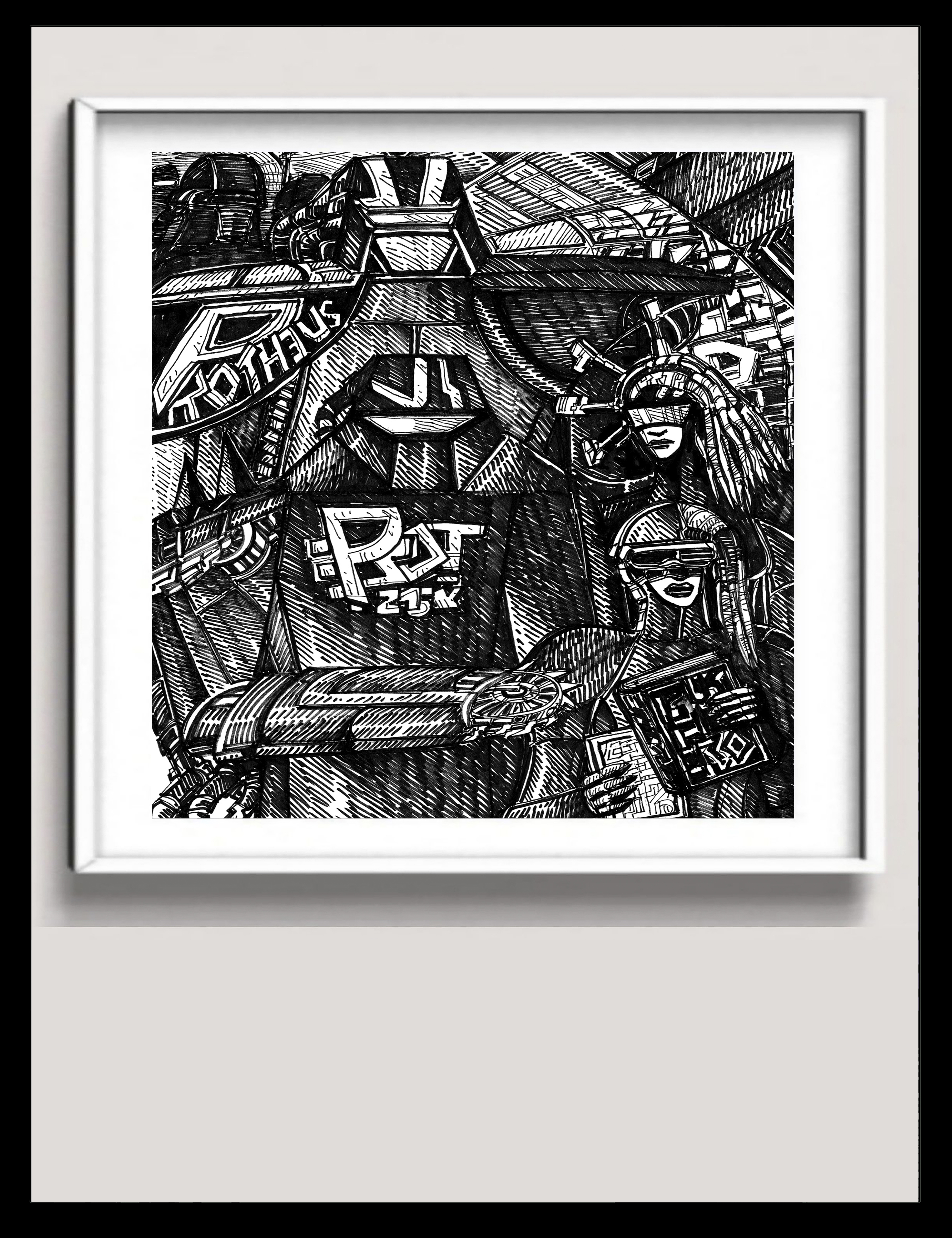 Arte Original da Série EM CORES, c/ moldura. Temática Sci-Fi, Cyberpunk, Goth. Art By Law Tissot. (on ig @lawtissot)