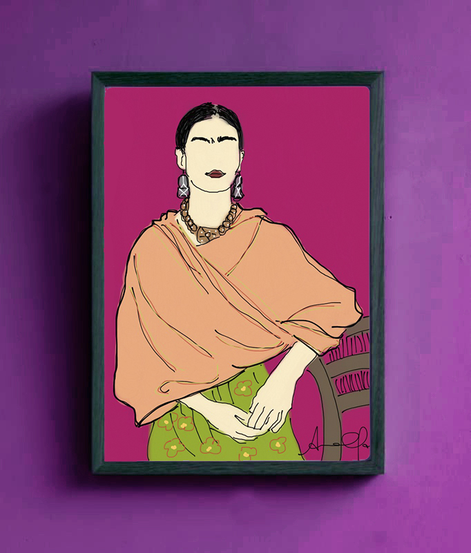 Quadro já emoldurado da coleção HashTag Frida da artista Ana Clara Tissot. Tamanhos disponíveis: A5; A4; A3. Já em moldura.